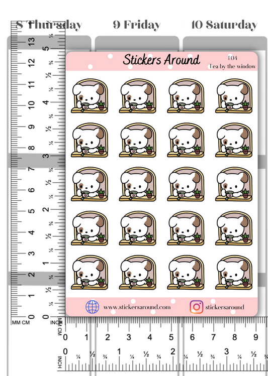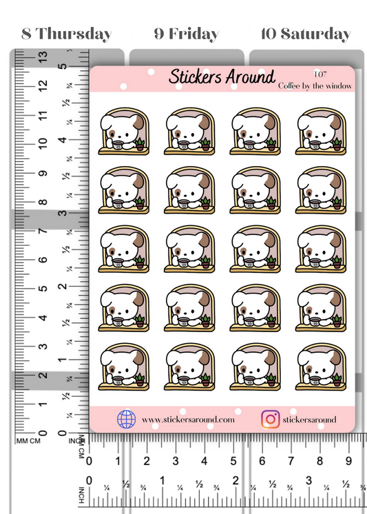 Toby Drinking Coffee by the Window Planner Stickers