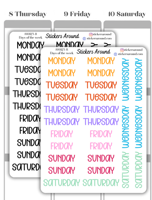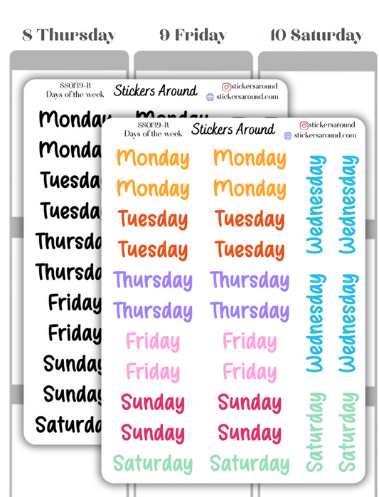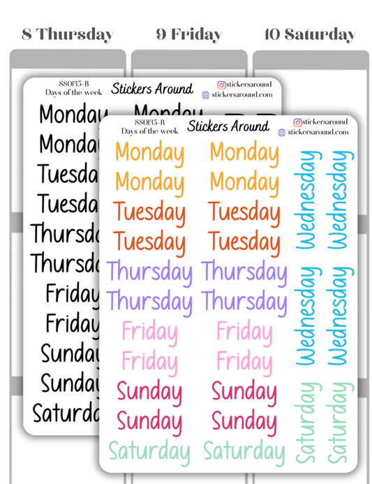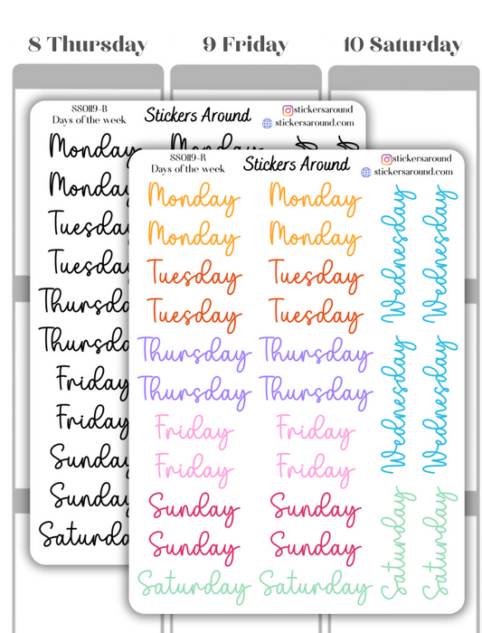 Months and Days of the Week Script Planner Sticker - Font 3